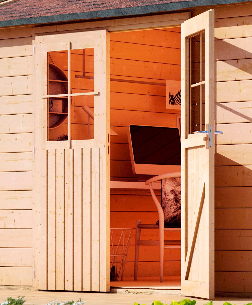 Gartenhäuser in großem format können beispielsweise richtige wohnhäuser sein, die neben einer küchenzeile und einer toilette auch schlafplätze und sitzgelegenheiten beherbergen können.