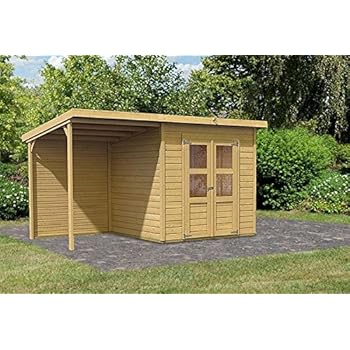 Gartenhaus Karibu Merseburg 3. Das pultdach besteht aus dachplatte, sodass das gartenhaus rasch gegen von oben kommende witterungseinflüsse geschützt ist. In naturbelassen erhältlich mit optionalem anbaudach.