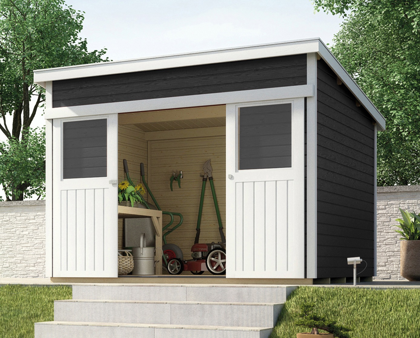 Lillevilla +3 er et praktisk redskabsrum i træ på 4,23 m² fra luoman, hvor du kan opbevare alle dine haveredskaber, havemøbler, grill, cykler mm. Gartenhaus mit schleppdach gartenhaus modern satteldach gartenhaus selber bauen selber bauen anleitung raumklima. 475 x 298 cm, flachdach, inkl. Aus farbig lasiertem fichtenholz, sockelmaß (bxt):
